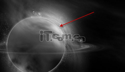 13、在行星图层下创建一个新图层,使用白色的柔角笔刷在下图层所示的位置上单击一下添加一些光线效果,笔刷可以使用较大一点的。