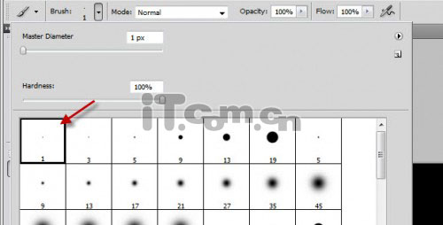 15、选择画笔工具在属性栏中设置笔刷的大小为1px,如图所示。