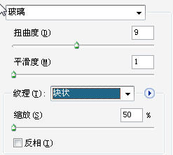 B、玻璃滤镜:滤镜→扭曲→玻璃,参数:
