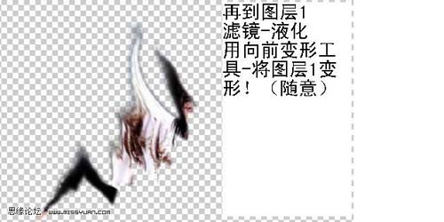 + Ctrl + X执行液化操作,用向前变形工具将图层1变形。