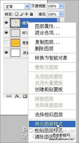 12、做出杆子的立体感。右键单击糖果图层,选择拷贝图层样式。