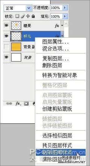 13、右键单击杆儿图层,选择粘贴图层样式,杆子也有了立体感。