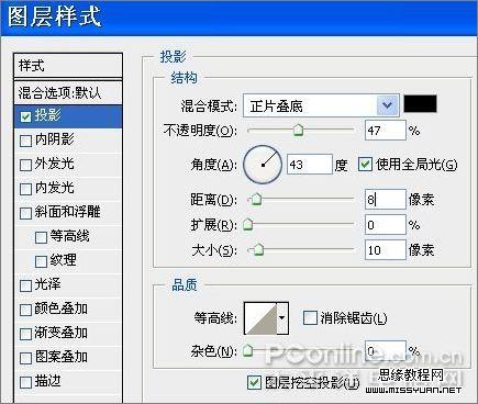 14、将糖果和杆儿图层合并,在其图层样式中勾选投影,设置如下。