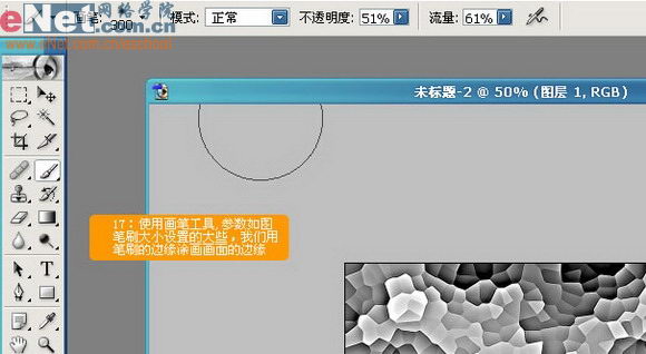 17、使用画笔工具,参数如图,笔刷大小设置的大些,我们用笔刷的边缘涂画,画面的边缘。