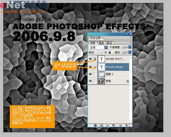 19、别忘了把背景显示出来,使用文字工具,输入这几行字,不一定写我这几个,写上你自己名字都可以,字体用的是“Agial"和Aprial