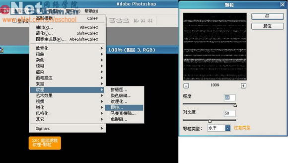26、继续滤镜——纹理——颗粒。如下图设置: