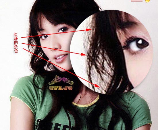 01、这个方法可以去除散发的边缘杂色,当我们打开图片时可以看到散发的边缘有红色的杂色。