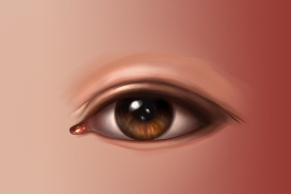 使用砖色,例如#c54432,在眼睑周围轻轻画出一些细节点缀,特别是在下眼睑靠内侧的地方。不要太明显,只需要用较轻的笔触让眼睛看起来有生气,又不是画僵尸眼睛,所以就不要画得血红血红的。