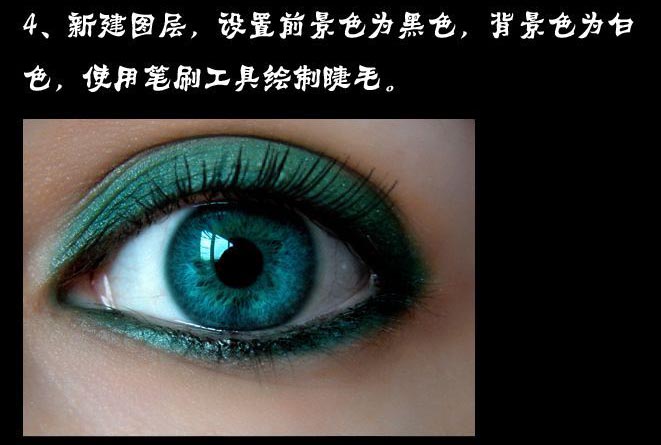 4.新建图层,设置前景色为黑色,背景颜色为白色,使用笔刷工具绘制睫毛。