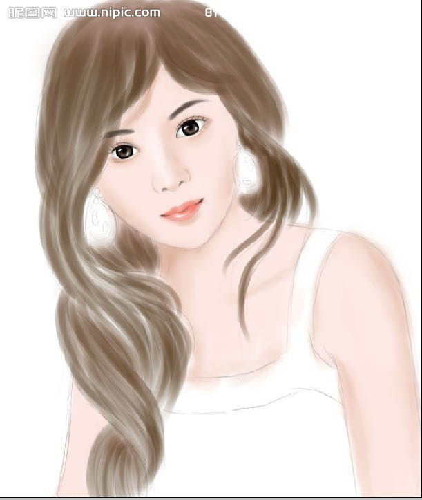 24、用深棕色画出头发的大概基色。