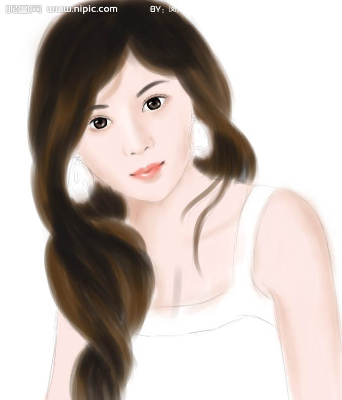 27、用基色的黑画出底层的发丝,让头发看起来飘逸。