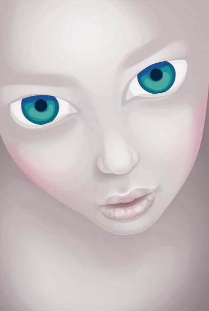 10、进一步添加透明的径向渐变和不同颜色的低透明度形状,以增加深度和眼睛的细节。我在眼睛周围使用了许多白色的径向渐变。这种方法也被使用到嘴唇周围,使其更突出。同时也柔化了一些看起来比较僵硬的线条。