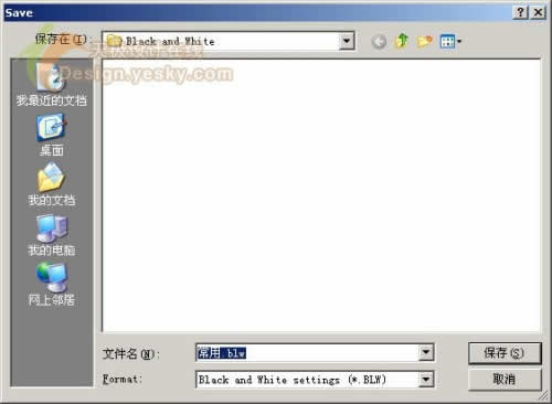 然后在“Save”(保存)对话框中可以看到出现的文件夹是专门用于保存黑白转换预设的“Black