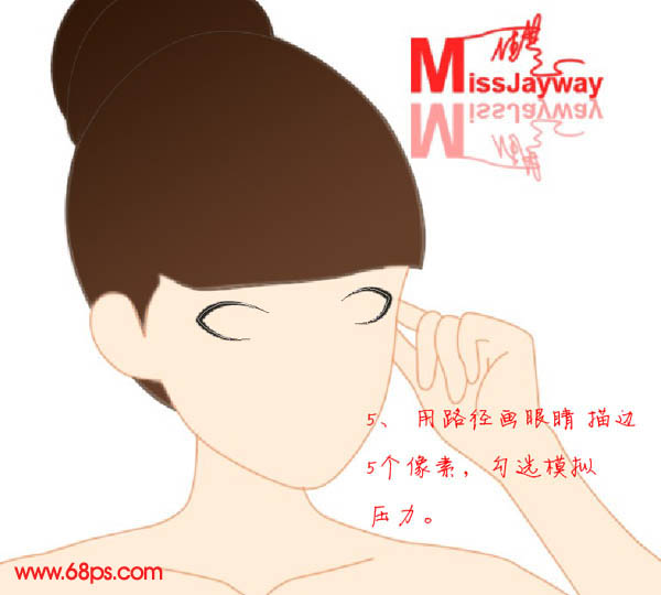 5、新建一个图层,用钢笔工具勾出眼睛轮廓路径,用大小为5像素的黑色画笔描边路径,勾选模拟压力,效果如下图。