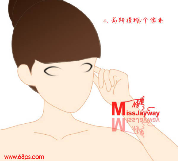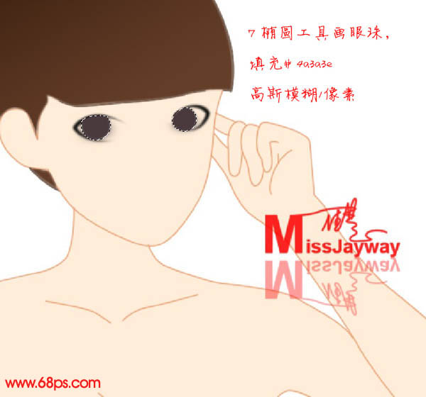 7、新建一个图层,用椭圆选框工具画出左右眼珠部分选区,填充颜色:#4a3a3e,取消选区后高斯模糊1像素。