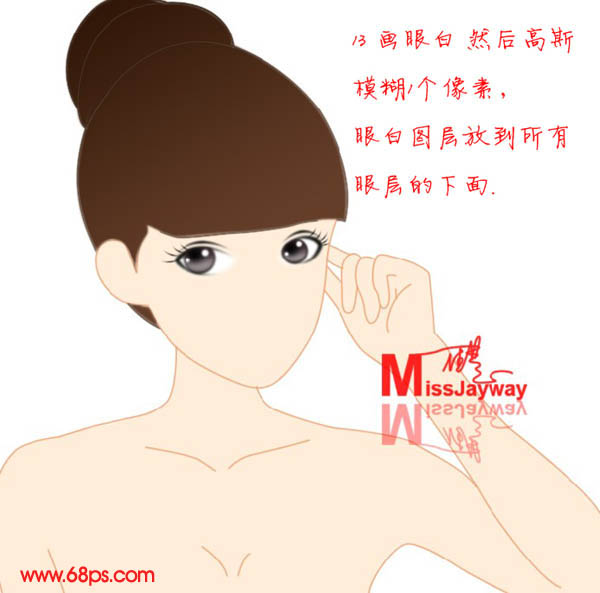 13、新建一个图层画眼白,然后高斯模糊1个像素。眼白图层放到所有眼部图层的下面。