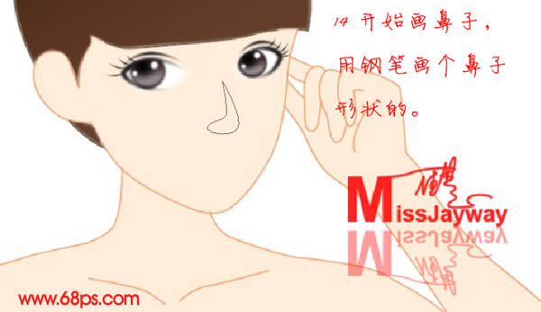 14、开始画鼻子。新建一个图层,用钢笔勾出鼻子的路径,如下图。