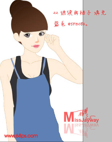 22、继续画裙子,填充蓝色:#5f80b3。