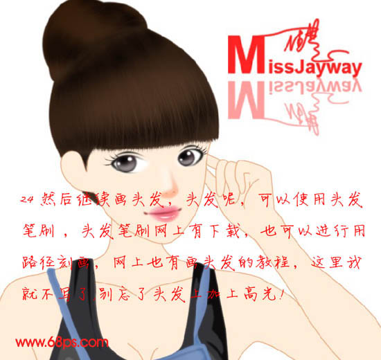 24、然后继续画头发,可以使用头发笔刷,可以去网上下载相关笔刷。也可以进行用路径刻画。