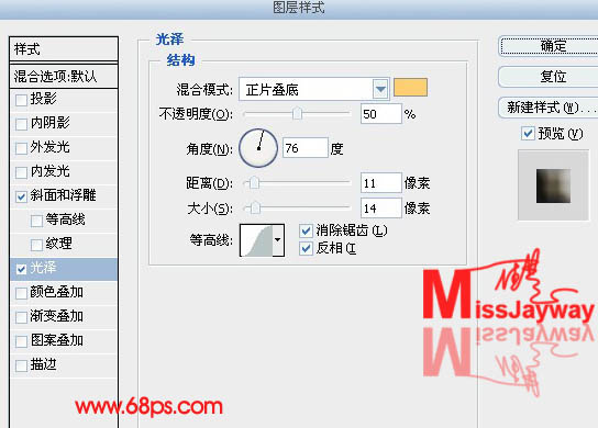 26、再在发夹上添加图层样式,选择斜面和浮雕以及光泽,具体参数设置如下图。