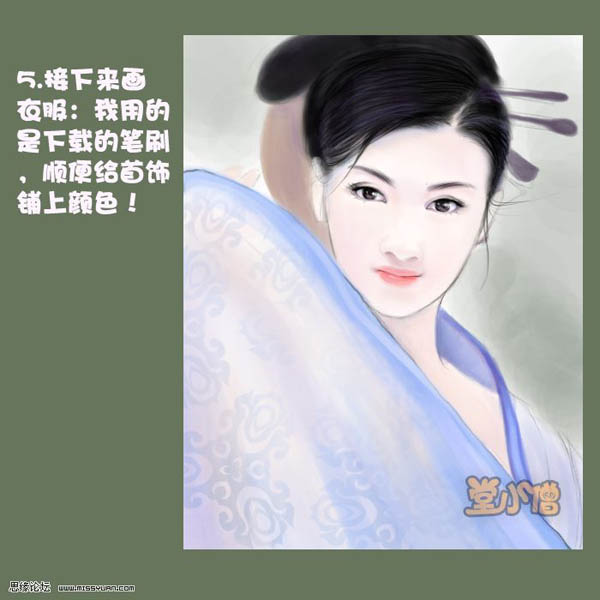 5、接下来画衣服,这里用的是下载的笔刷,顺便给首饰部分上色。