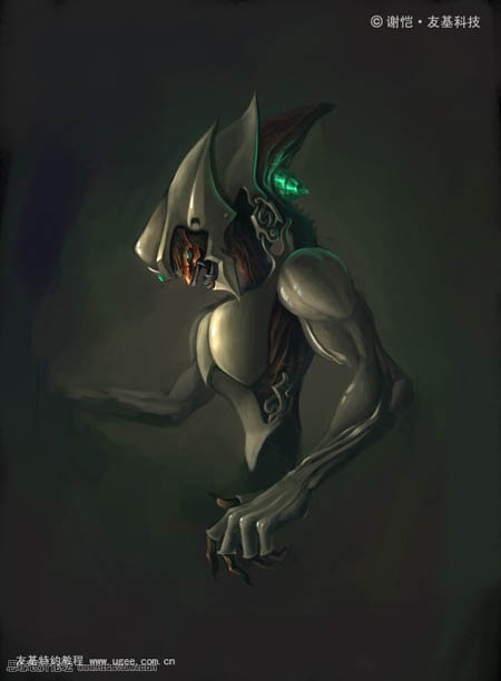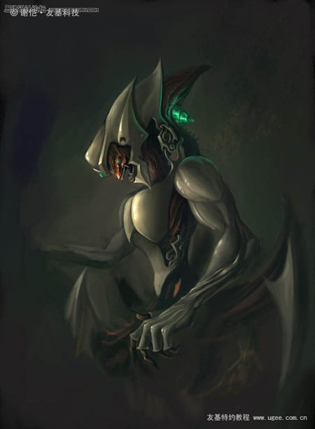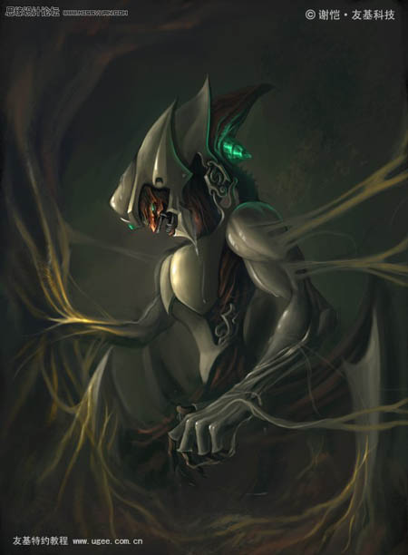 18、把四周的山脉完成,以符合这幅作品的题目,把怪兽快要重生时出现的黏液表现出来。(注意:重生时身体与山脉连接时的经脉。)