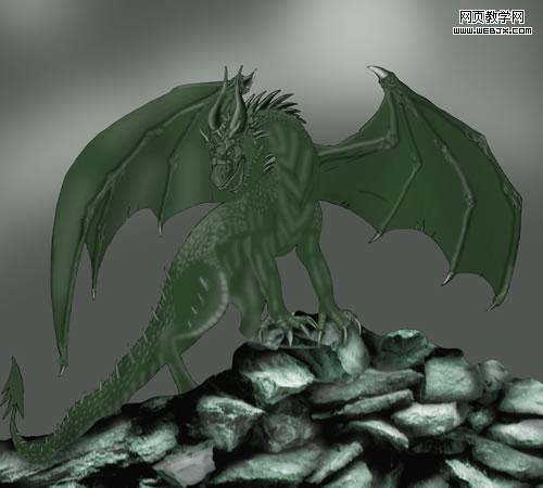 9、然后我们找到一堆岩石的素材,放到巨龙的脚下。