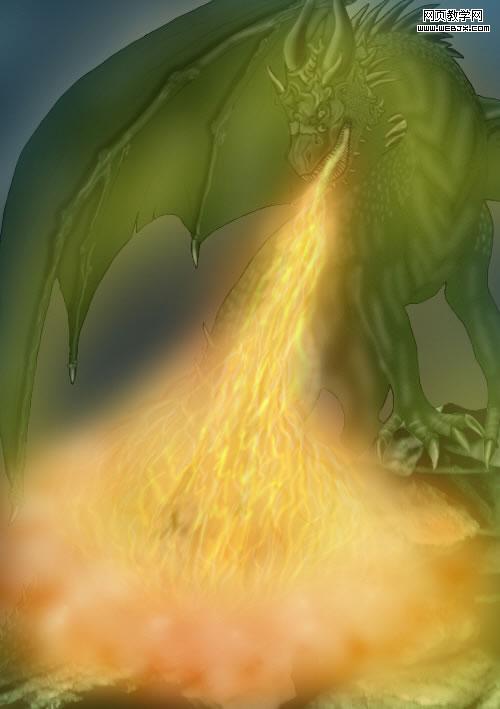 15、然后我们在巨龙图层上面添加一些反射出来的火焰。