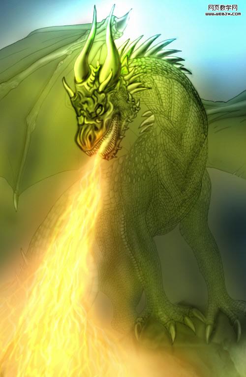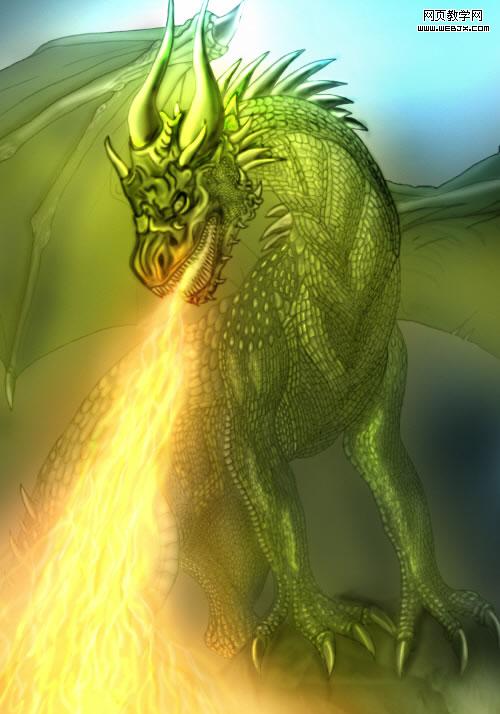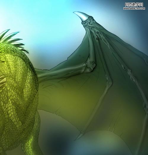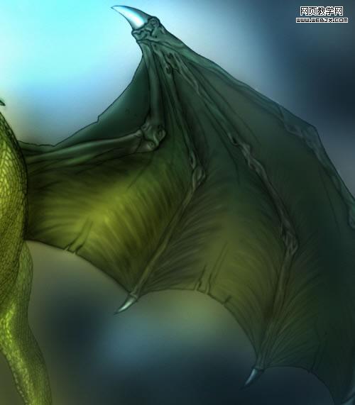18、下面我们用加深和减淡工具在巨龙的鳞片上添加光线和阴影。