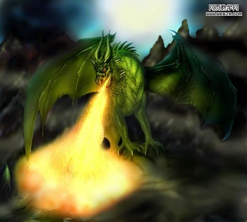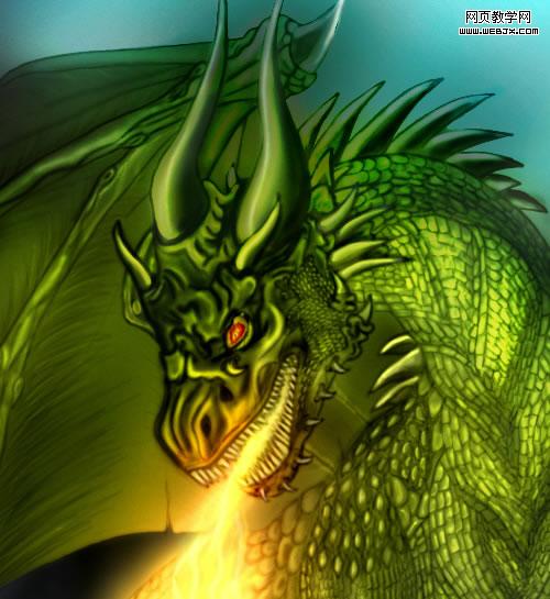 25、在巨龙的后面添加一个月亮,当然你可以充分发挥你的想象,可以添加你喜欢的图案。