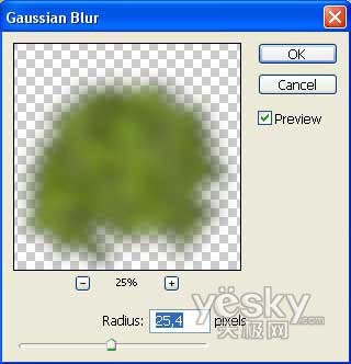 16、复制树冠层,并将下面一层的树冠层用高斯模糊滤镜做模糊处理。