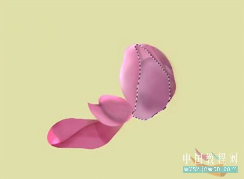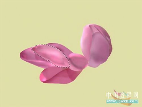 3、新建图层。取名字为(花瓣3)。这次画的是重瓣的花瓣。方法是结合上面的使用选区的方式先用钢笔工具勾绘出一个大花瓣,再用选区工具在大花瓣里勾绘出一些小花瓣(注意先后顺序哦。)大概的顺序请看图9-14: