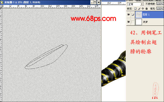 42、用钢笔工具绘制出翅膀的轮廓。