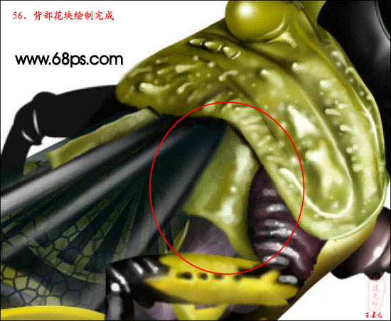 55、背部花块的绘制方法和绘制头部花块一样。