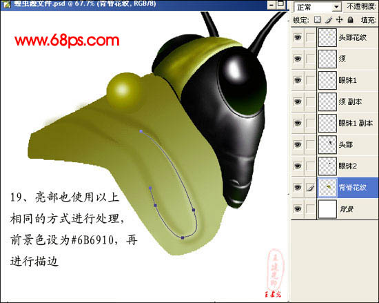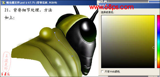 20、用加深/减淡工具结合画笔工具把背脊的立体感体现出来。