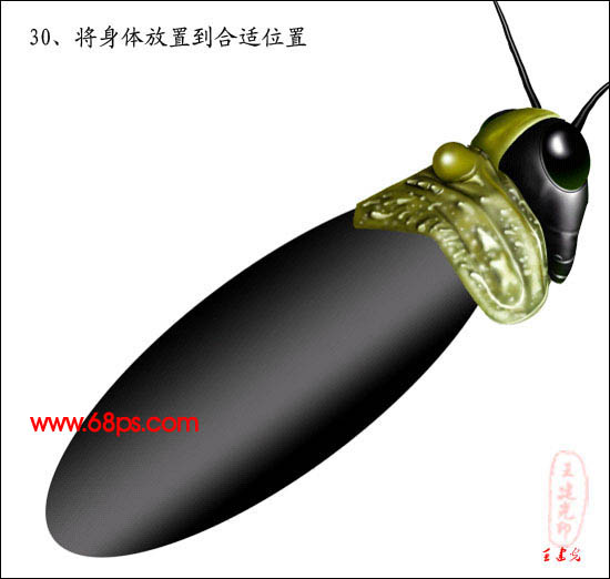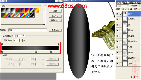 29、身体的制作,新建一个图层,画一个椭圆,用渐变工具做出如下效果。