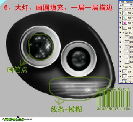 5、反光镜部分填充灰色,用加深/减淡工具涂出高光和暗调,再加上描边如下图。