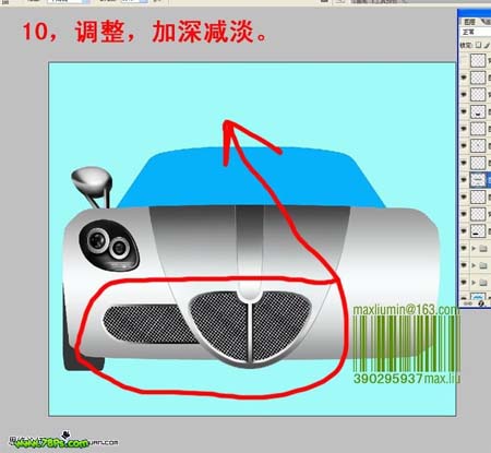 10、用加深/减淡工具调整网格部分的明暗度。