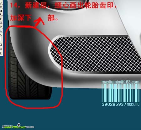 14、新建一层,细心画出轮胎齿印,再稍微加深处理。