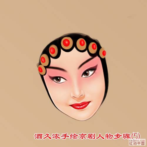 6、画出人物的神态,不同于笔触感的风格,所以颜色要均匀才更好看,用PS工具的模糊、涂抹,都可以用上,这些都没有定义。