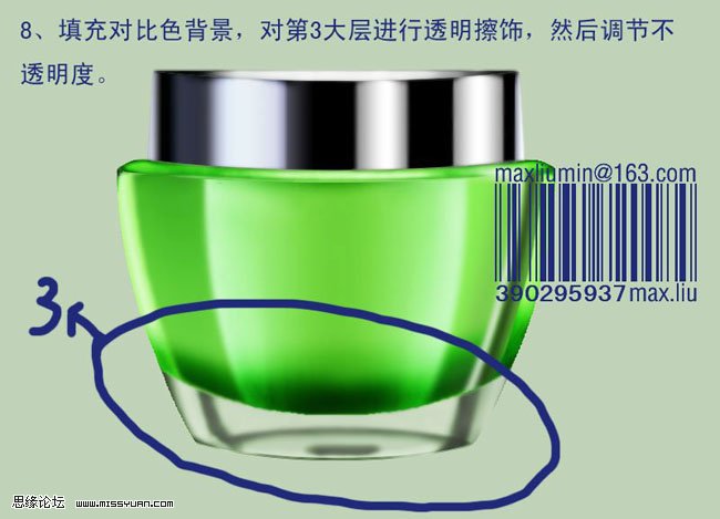 8、把背景填充颜色,然后对第3大层进行透明擦饰,然后调节不透明度。