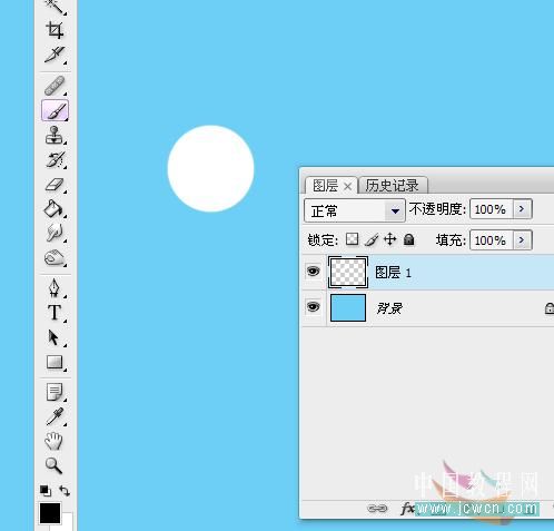 1、先来画耳朵,白画笔高硬度,100%圆度,在画布上点一下。