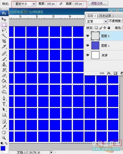 10、新建一层,设置矩形选框工具的属性,在右下角点一下。