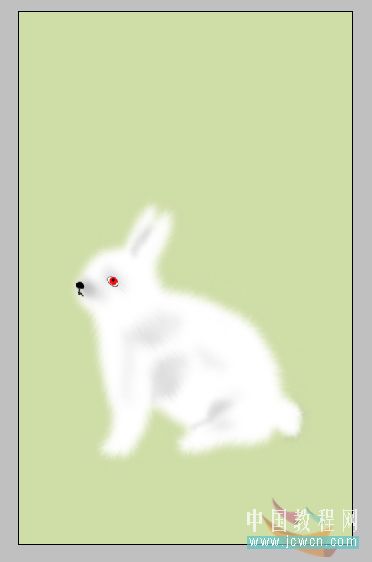 7、在兔子图层上新建一层,用画笔画出兔子的眼睛、鼻子和嘴,合并到兔子图层上,就OK了。(如果对兔子的眼、鼻、嘴的位置把握得好的话,也可以直接在兔子图层上画)。