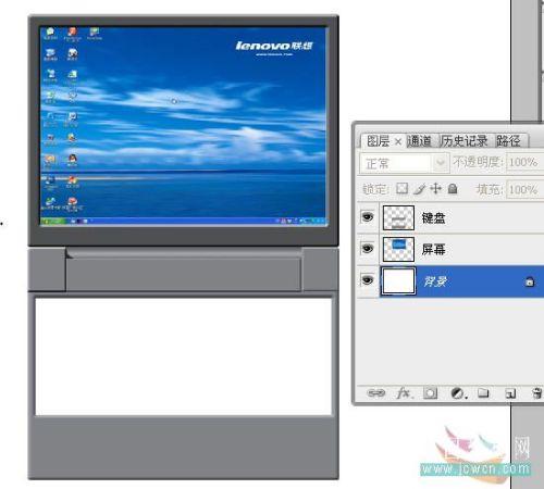 20、隐藏背景层和图层3(即屏幕),合并全部可见图层,并对现存的三个层重新命名。现在效果和图层关系如图示:
