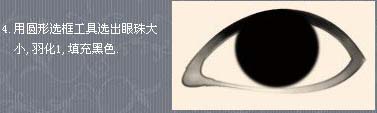 4、用圆形选框工具选出眼珠大小,羽化1像素,填充黑色。