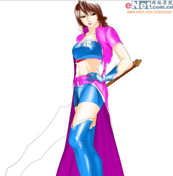 2、另建图层,为身体和衣服上色。注意光源要统一,不用太计较边缘的溢出。