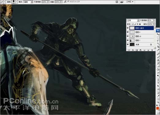 6、根据整体来进行配角的刻画,要注意光影统一。感觉视觉疲劳了可以翻转画布再进行刻画。