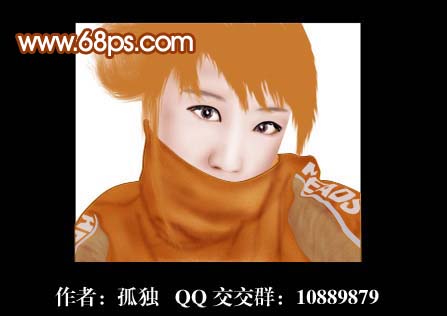 11、没有头发也很吓人啊,用路径勾出头发的大概轮廓,填上颜色之后,用涂抹工具选择自然画笔中的第一个笔刷涂。