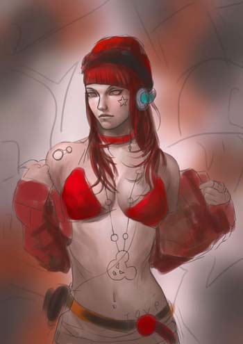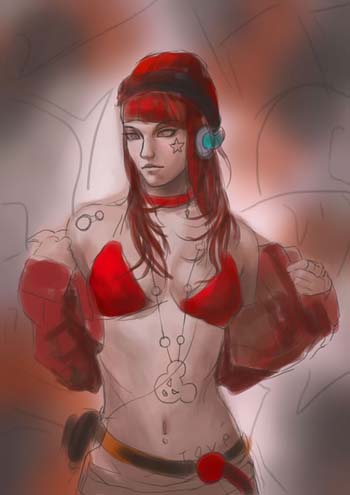 4、形体塑造为了更好的绘制形体结构,建议大家参考一些照片。注意形体肌肉的走向和骨骼。给角色穿上衣服同时用曲线调节了一个整体的颜色。如图7-14